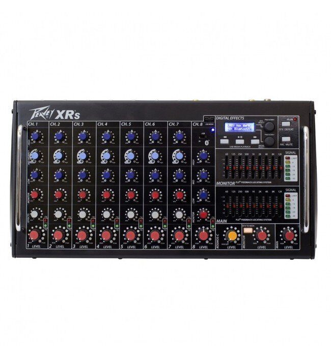 Peavey XR-S - это активный 8-канальный микшерный пульт с Bluetooth-каналом и мощной секцией усиления.