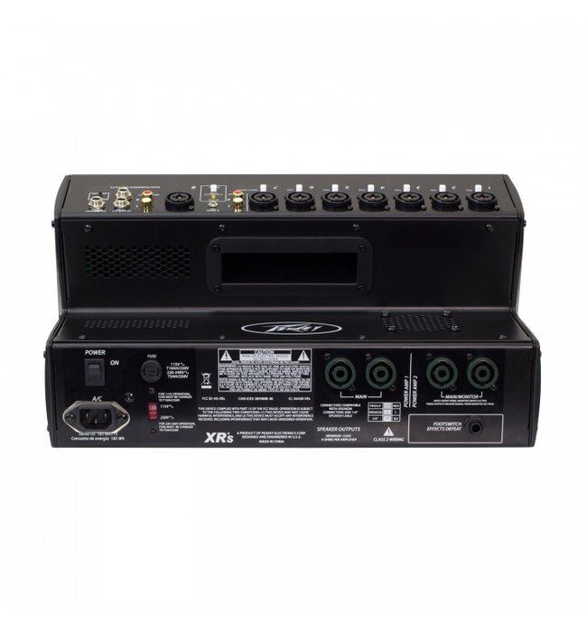 Микшер XR-S оснащён усилителем класса D мощностью 1500 Вт (пик), 7 каналами с индивидульными компрессорами и 8 комбинированными входами TRS/XLR. Выходов хватит для любой цели: 4 порта Speakon Twist Lock, линейный выход на сабвуфер, 8-PIN/MIDI-порт для создания пресетов и управления системой Auto-Tune, выход Monitor Send и RCA-выход с возможностью аналоговой записи.