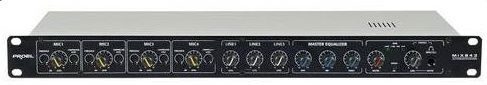 Инсталляционный автоматический компактный микшерный пульт 19": 3 линейных + 4 микр. входа, 3-х полосный эквалайзер, LED индикация уровня сигнала, фантомное питание, 1U
