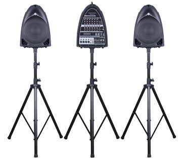 - - Портативная звуковая система, включающая 2 10’’ переносны[ динамика, 1 запитываемый микшер, 1 динамический микрофон и все необходимые кабели