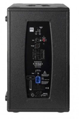 Конструкция акустического кабинета активного сабвуфера E 110 Sub A впитала в себя самые лучшие компоненты и опыт компании HK. Акустический кабинет сабвуфера изготовлен из качественной многослойной фанеры (MDF), все компоненты точно подогнаны друг с другом, что исключает малейший резонанс при высоком звуковом давлении. Передняя панель закрыта прочной стальной решеткой.