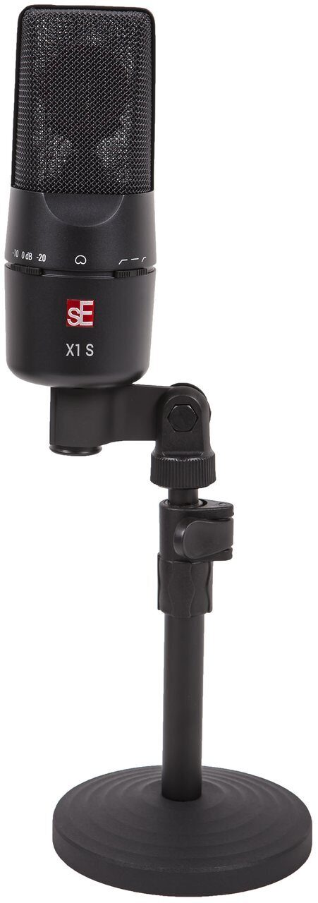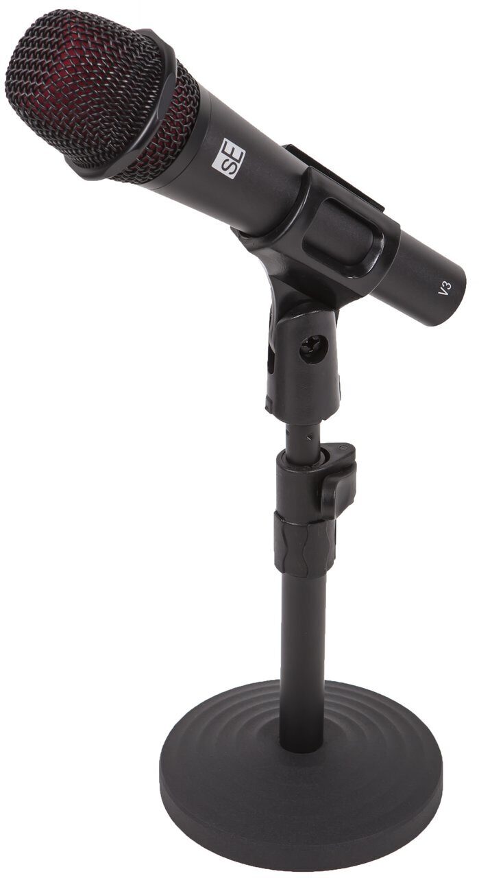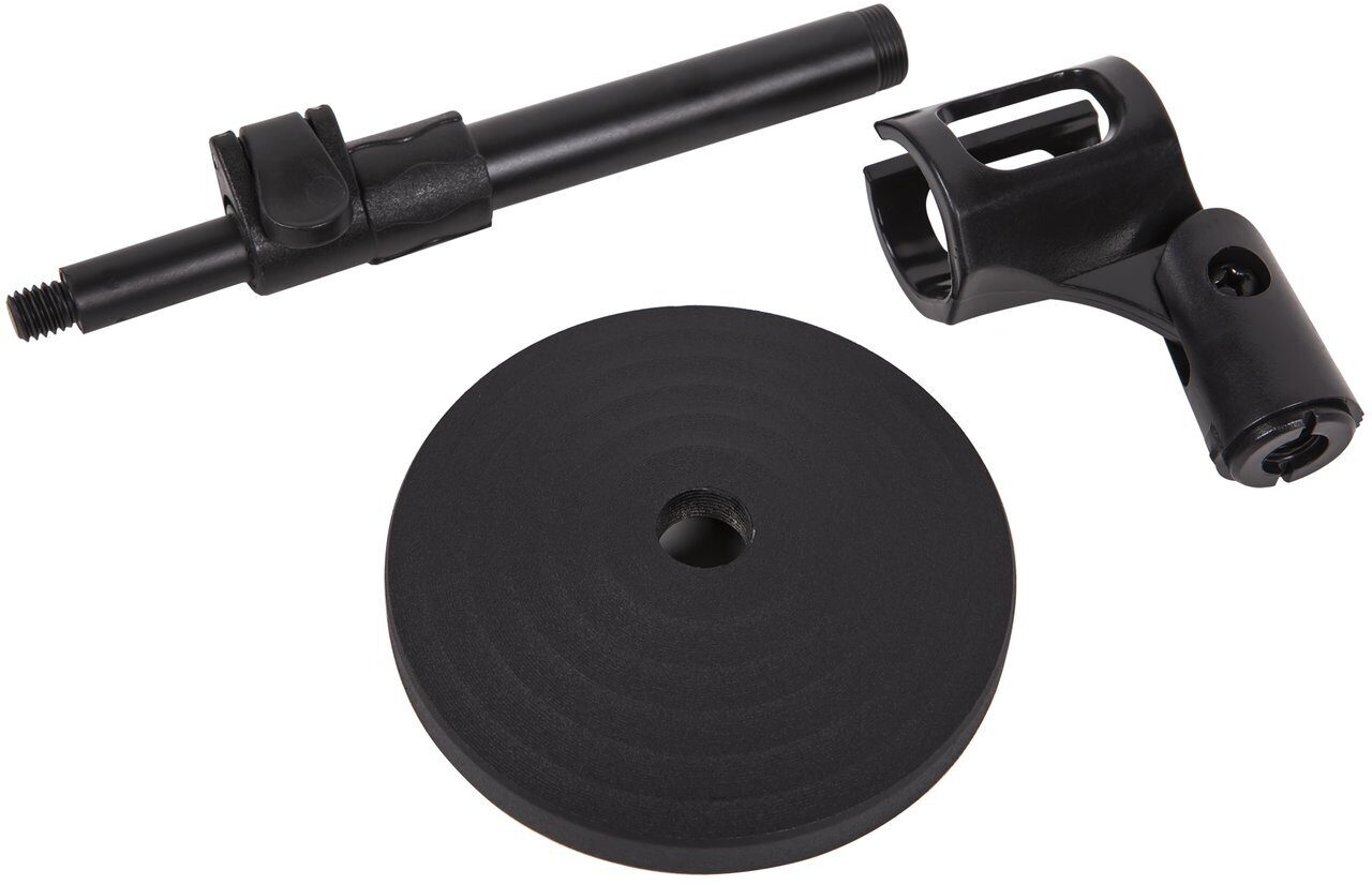 Доступная и довольно прочная настольная микрофонная стойка для динамических микрофонов (держатель идет в комплекте) или для конденсаторных студийных. Основание - круглое, есть регулировка по высоте, простая фиксация