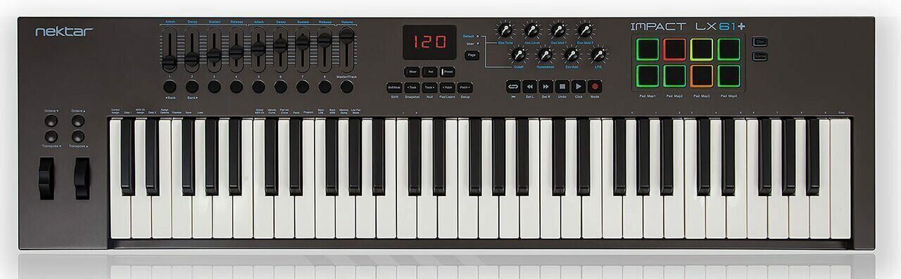 Для создания грувов и битов контроллер имеет 8 чувствительных к скорости пэдов. Каждый пэд может быть назначен на соответствующий звук или MIDI CC сообщения в качестве MIDI-триггера или кнопок переключения. Но самая лучшая деталь - это функция "Pad Learn“ позволяет Вам просто выбрать пэд, воспроизвести ноты или ударные звуки. В LX61+ нет никакого сложного меню, что важно для простоты управления. Задания сохраняются в режиме питания, поэтому вы не теряете свои настройки при выключении системы на ночь.