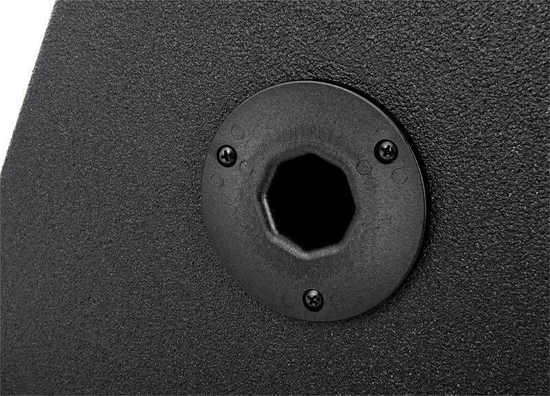 Кабинет акустической системы оснащен специальными разъемами для крепления акустической системы на стойках. Разьемы находятся на нижней поверхности кабинета, разьемы предназначены для стоек с диаметром 1-3/8 дюйма. Установив Yamaha S115V на стойку можно охватить гораздо большие площади для качественного озвучивания, чем при использовании акустических систем, установленных на полу.