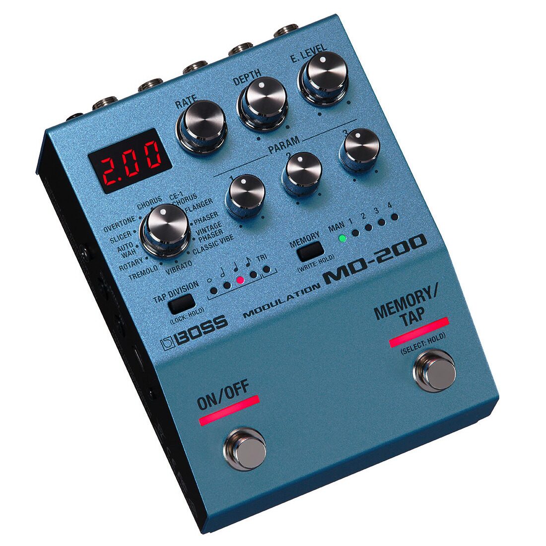 Компактная и мощная педаль MD-200 предлагает наиболее востребованные эффекты модуляции при минимальных требованиях к пространству на ее размещение. Среди предлагаемых эффектов винтажные хорусы компании BOSS, а также фазер, флэнжер, вращающиеся динамики, вибрато и тремоло. Доступны также классические эффекты Vibe и фазера семидесятых годов с возможностью добавления дисторшна для большей универсализации. С помощью знаменитого эффекта Slicer компании Boss можно создавать уникальные ритмические фразы, а роскошный эффект Overtone позволит сделать тембр более "внушительным" за счет октавного удвоения, придать ему индивидуальную "окраску". Доступен также эффект автоматического вау с экстенсивными возможностями настройки, который может работать также и под управлением внешней педали экспрессии.