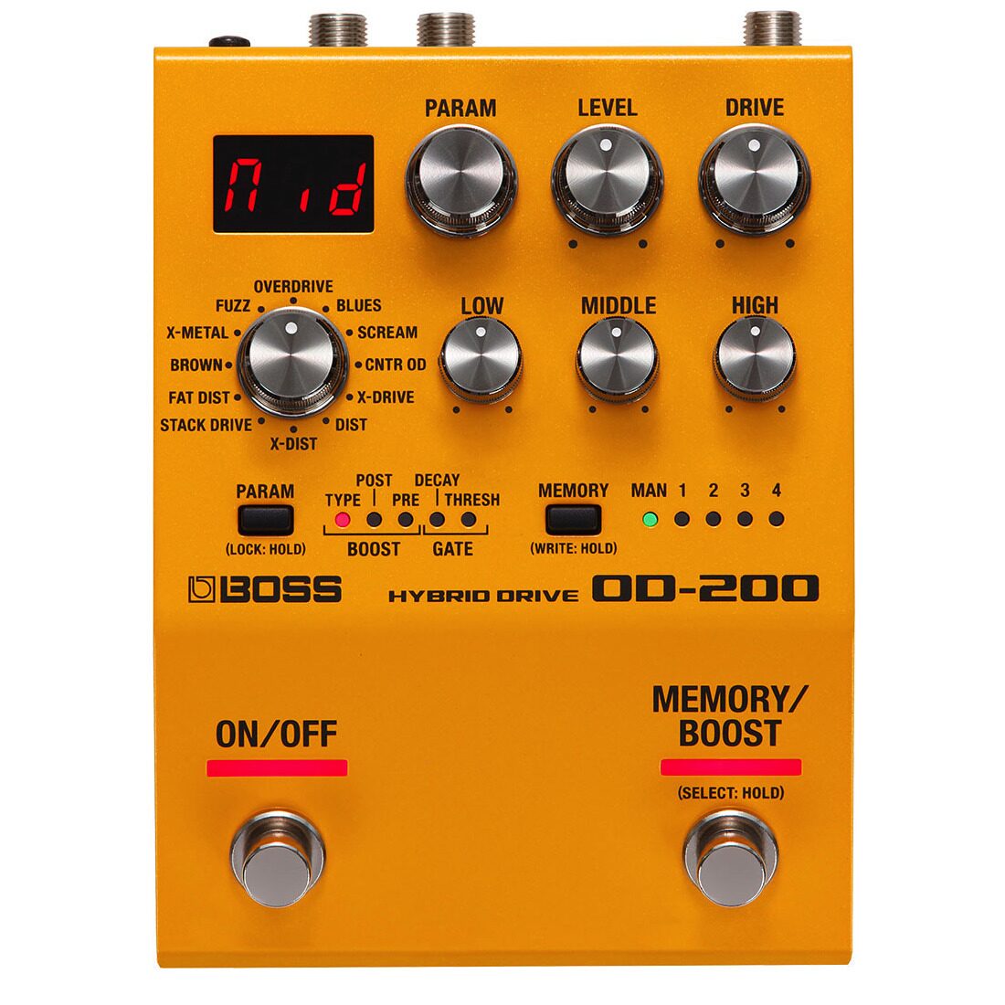 Благодаря использованию огромного опыта компании и инновационных технологий, OD-200 в состоянии воспроизвести любой перегруженный звук гитары, который только можно себе представить. Точное формирование характера искажений и звука в целом достигается за счет применения аналоговых и цифровых схем, трехполосного эквалайзера и мощной секции буста, способной поднимать уровень сигнала как до, так и после основной обработки. Продвинутая схема шумоподавления не только устраняет шумы, но и добавляет звучанию плотность и агрессивность. Устройство поддерживает подключение внешних контроллеров и педали экспрессии, а также может управляться с помощью MIDI. Питание педали осуществляется от трех батареек AA или внешнего адаптера.
