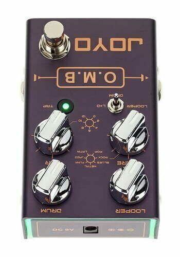 В режиме лупер есть функция автоматического выравнивания и функция отсчета для первой записи. Максимальное время записи - 40 минут. В режиме драм-машины вы можете выбрать 7 жанров ударных с 7 различными битами в каждом. Темп можно задавать с помощью кнопки Tap Tempo, LED индикатор мигает в такт. O.M.B синхронизирует ваш луп с грувом барабанов. Стили ударных – поп, рок, блюз, метал, панк, джаз и латино-американский. Серия Revolution от JOYO – это 4 поколение гитарных эффектов. 3 режима светодиодной подсветки можно переключать с помощью переключателя на задней части педали.