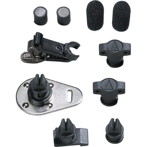Аксессуары в комплекте: блок питания Audio-Technica AT8537, АТ8439 кабельный зажим; клипса на одежду, змеевидный зажим; магнитный зажим и пластина с вытяжным шнуром; три одноместных микрофонные держатели; два двойные держатели микрофона, две батарейки; две ветрозащиты; батареи; защитный чехол.