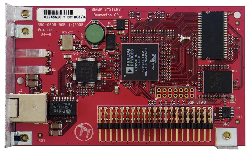 Плата аудиокодека Biamp VoIP-2 для передачи аудиосигналов через интернет.