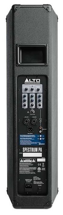 Alto SPECTRUM PA - это активная акустическая система со встроенным Bluetooth и светодиодной подсветкой. Звуковые драйвера прекрасно передает звучание голоса и музыкального сопровождения в небольшом зале караоке или кафе. В АС есть встроенный модуль беспроводной связи Bluetooth (A2DP) для подключения мобильных и медиаустройств. Также система оснащена оригинальной светодиодной подсветкой. Подсветка имеет несколько, переключаемых режима работы - Mood, Meter, Mix, Pulse, Party с регуляторами яркости свечения. Благодаря такой системе пользователи получают не только насыщенное звучание, но и яркое световое шоу. Для коммутации доступны 2 комбинированных входа (XLR-1/4 Jack), стереовход 2 х RCA и Aux-вход (мини-джек). Диапазон частот: 65 Гц – 20 кГц. Кроме этого на задней панели есть 3-канальный микшер с двухполосным эквалайзером и дополнительный выход XLR "Link"" для подключения 2 акустической системы.