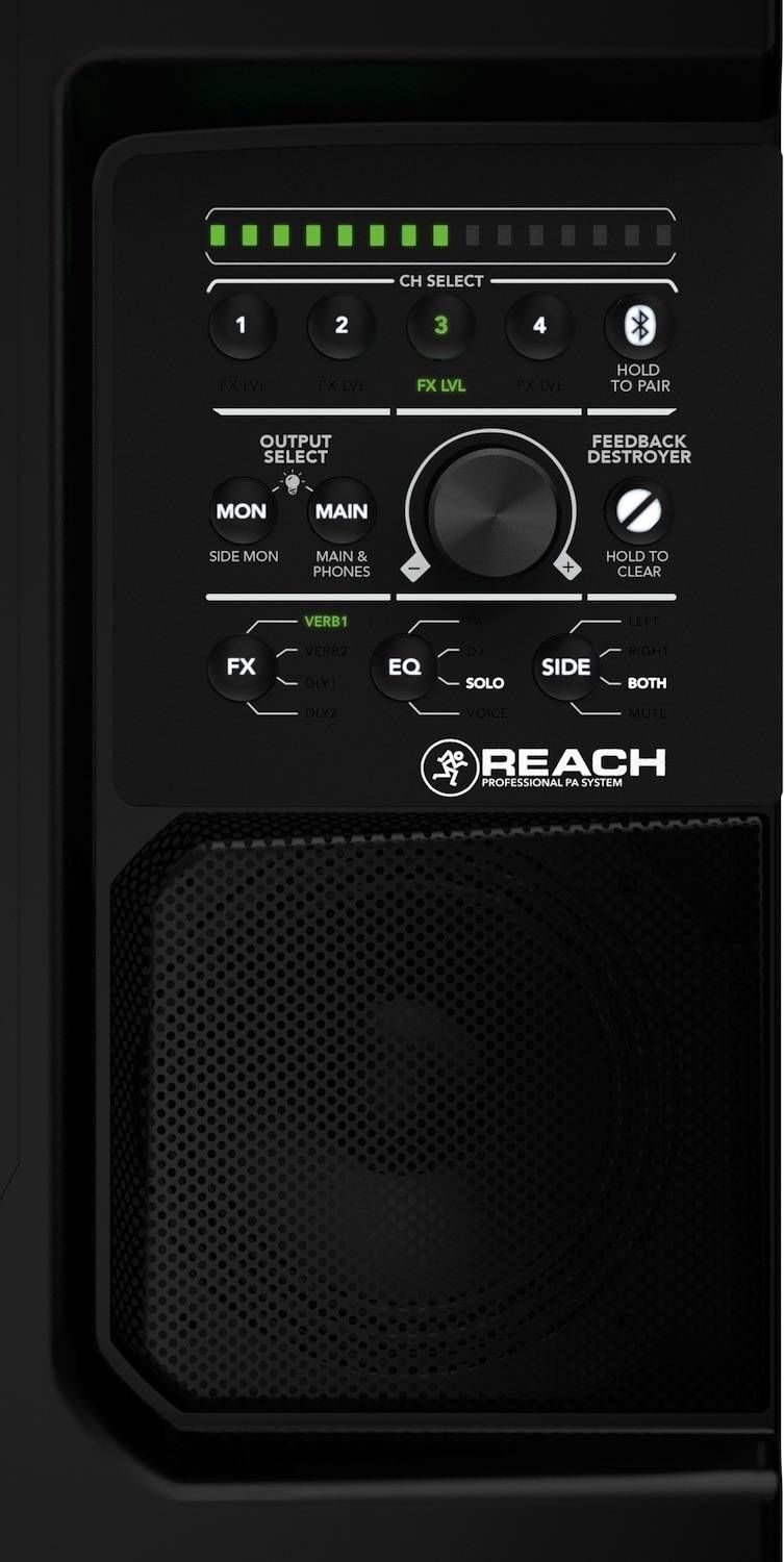 MACKIE Reach - это портативная активная акустическая система с расширенной зоной покрытия и модулем Bluetooth. Мобильный звукоусилительный комплект включает в свой состав все, что нужно для проведения небольшого мероприятия или выступления музыканта. В состав комплекта входит встроенный 6-канальный микшер и две акустические системы. Несмотря на свои компактные размеры 711 х 218 х 241 мм. и вес в 14,2 кг., акустика имеет высокую выходную мощность и премиальные звуковые характеристики. Модуль Bluetooth позволяет не только воспроизводить аудио с поколоченных устройств, но и производить настройку и управление функция системы удаленно при помощи фирменного ПО.