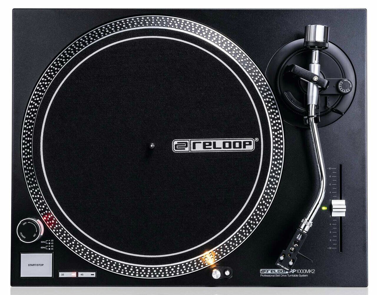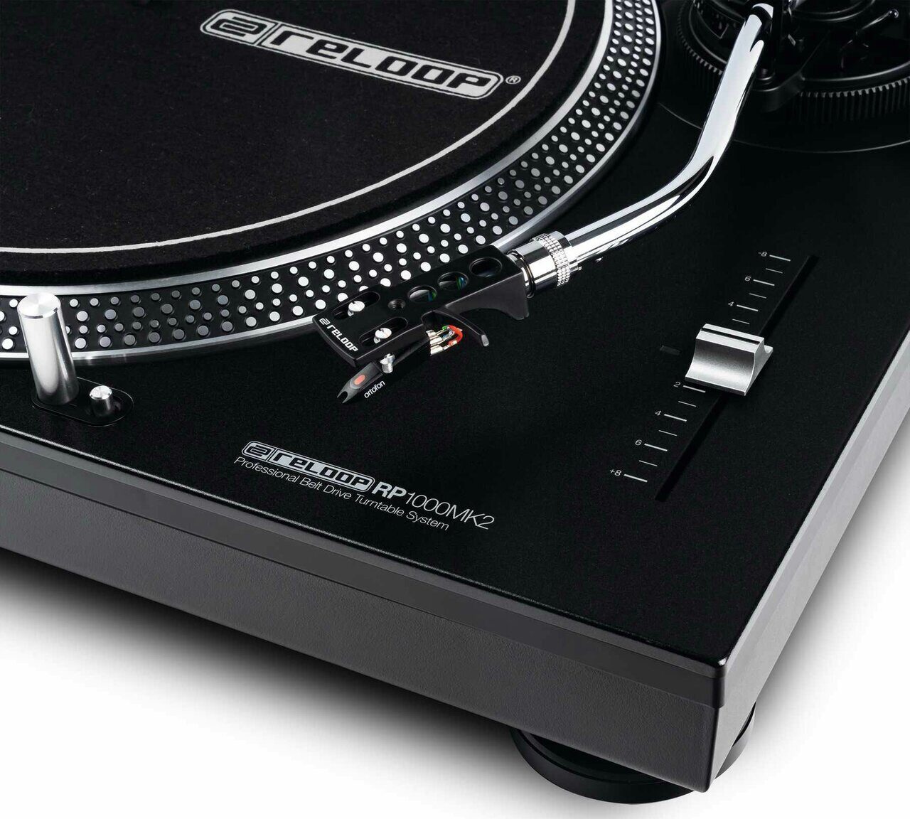 В отличие от проигрывателей с прямым приводом, мотор RP-1000 MK2 оборудован ременным приводом, позволяющим отделять блок привода от точно-спроектированного опорного диска и корпуса. Эластичный ремень, изготовленный из высококачественной резины поглощает и сокращает нежелательные вибрации, что приводит к воспроизведению без искажений. Регулируемое питч управление в диапазоне +/-10% позволит с точностью настроить проигрыватель.