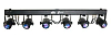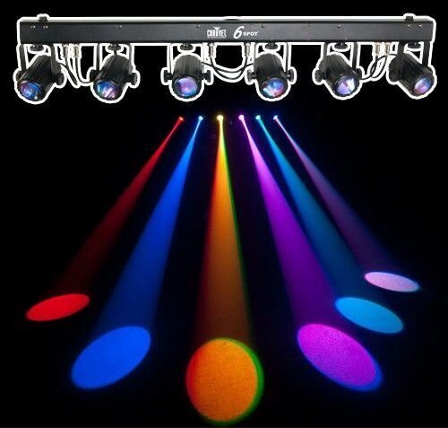 CHAUVET 6 Spot представляет собой комплект из 6 прозрачных светодиоидных профильных прожекторов, расположенных на перекладине. В каждом прожекторе находится 1 трехцветный светодиод с мощностью 3Вт, при смещении образующие 7 цветов. Продолжительность «жизни» светодиодных источников составляет более 50 000ч с сохранением не менее 70% светового потока. Каждый прожектор управляется отдельно при помощи поворотной головки и раскрывается лучом с углом в 11градусов.