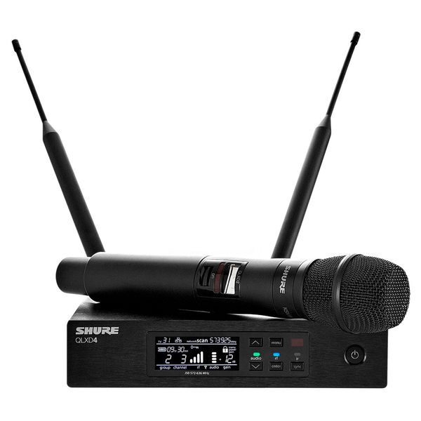 Это вокальная радиосистема линейки QLXD с ручным передатчиком KSM9. Радиосистема обеспечивает качественную передачу звука, высокую производительность и надежную работу в любом месте сцены, в прямой видимости до 100 метров. Приемник системы может работать с разными типами микрофонов Shure, среди которых модели серии SM, KSM, МХWL, WL, WB и др. Используя эту радиосистему, ведущие шоу-программ и вокальные исполнители, смогут передать максимум эмоций от своего выступления. Ручной передатчик Shure KSM9 представляет собой вокальный микрофон с переключаемой диаграммой направленности - кардиоида/суперкардиоида.