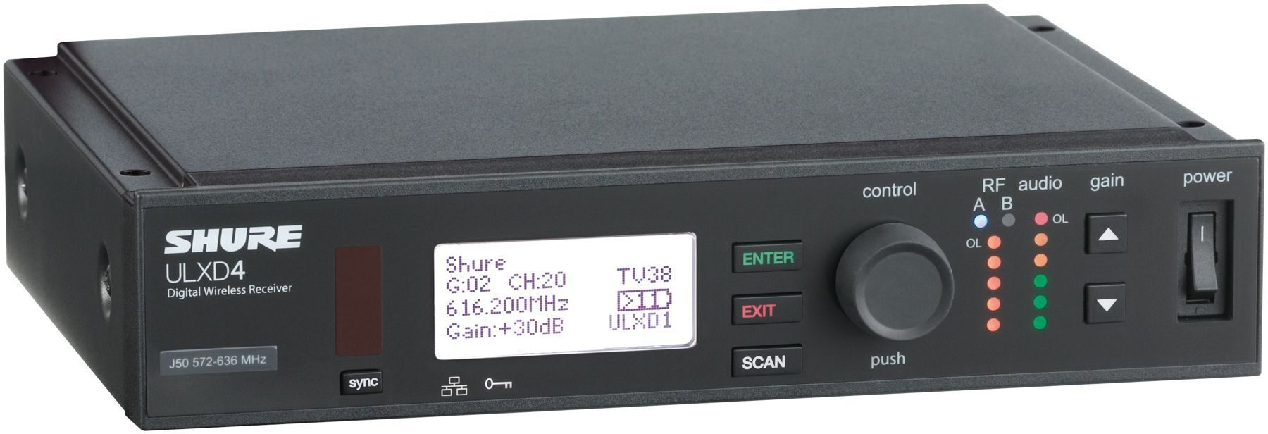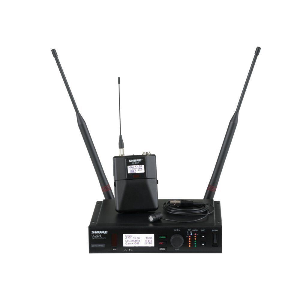 SHURE ULXD14E/85 P51 – радиосистема из линейки ULX-D® Digital Wireless от знаменитого американского производителя. Это высокопроизводительная система профессионального уровня, которая позволяет передавать аудио сигнал в цифровом качестве 24 бит/48 кГц с помощью беспроводного соединения, обеспечивая чистый и четкий звук. Система ULX-D® - это самое современное оборудование, лучшее в своём классе, обеспечивающее бесперебойную передачу сигнала. Частотный диапазон от 20 Гц до 20 кГц и гладкая АЧХ дают возможность транслировать звук источника максимально естественно и точно, без искажений. При этом система отличается простотой и удобством настройки, имеет эргономичный и интуитивно понятный пользовательский интерфейс. Синхронизация приемника и передатчика осуществляется с помощью инфракрасного соединения. Для защищенной передачи используется 256-битное шифрование AES.  Представленная конфигурация радиосистемы включает приемник ULXD4, компактный поясной передатчик ULXD1 и миниатюрный кардиоидный конденсаторный петличный микрофон премиального класса WL185. Приемник заключен в прочный металлический корпус, оснащен двумя съемными антеннами, он может быть установлен в рэк. Система совместима с AXT600 Axient® Spectrum Manager. Для удалённого управления и мониторинга с использованием программного обеспечения Wireless Workbench® предусмотрен порт Ethernet, возможна также интеграция в сеть Dante. Настройки наглядно отображаются на контрастном жидкокристаллическом экране приемника с подсветкой. Передатчик также оснащен экраном с подсветкой, работает от двух батарей или аккумуляторов АА 1,5 В. Время непрерывной работы – более 11 часов при использовании литий-ионных аккумуляторов Shure SB900A. ULX-D® Wireless эффективно функционирует при расстоянии между приемником и передатчиком до 100 метров. Рабочий диапазон радиочастот представленной модели радиосистемы – Р51, от 710 МГц до 782 МГц.