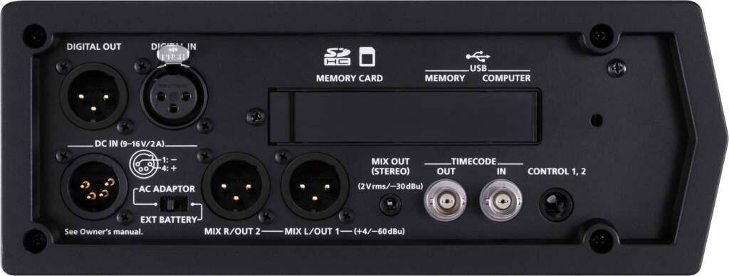 - Поддержка разнообразных источников питания - AA батарейки, перезаряжаемые Ni-MH аккумуляторы, адаптер питания и 4-х пиновый XLR для внешних источников питания.