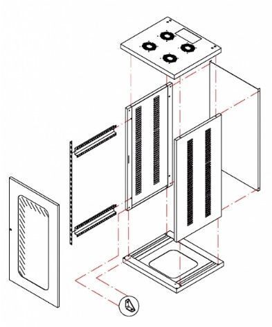 Рэковый "hi-tech" шкаф, 36U, с дверью из оргстекла и задней стенкой
