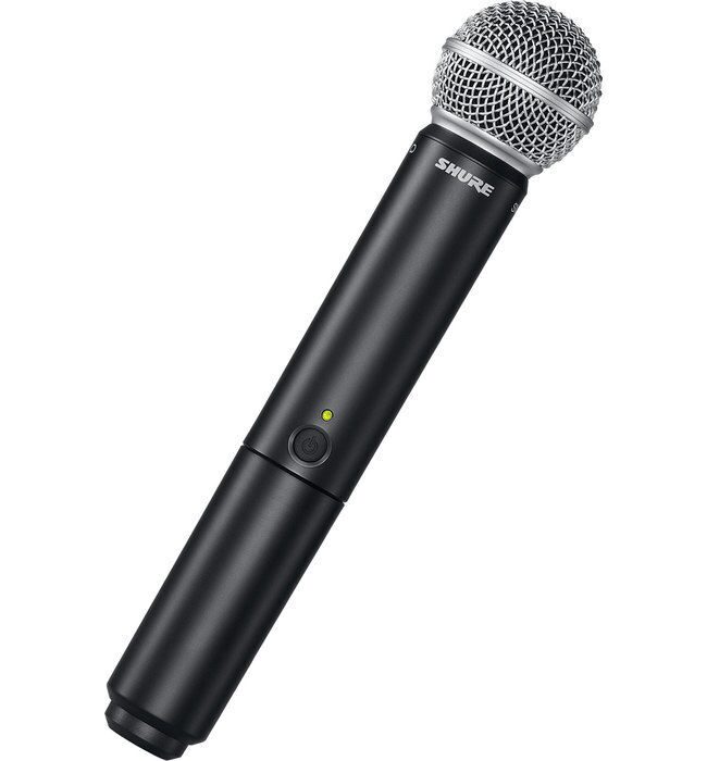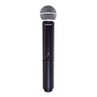 Это ручной передатчик для радиосистем с капсюлем динамического микрофона SM58. Передатчик совместим с радиосистемами BLX (50 - 15000 Hz). Предусмотрена возможность замены капсюля передатчика, что значительно расширяет возможности его использования и модернизации (опционально некоторые модели). При передаче сигнала передатчик поддерживает шифрование. На корпусе находится компактная кнопка включения/выключения микрофона.