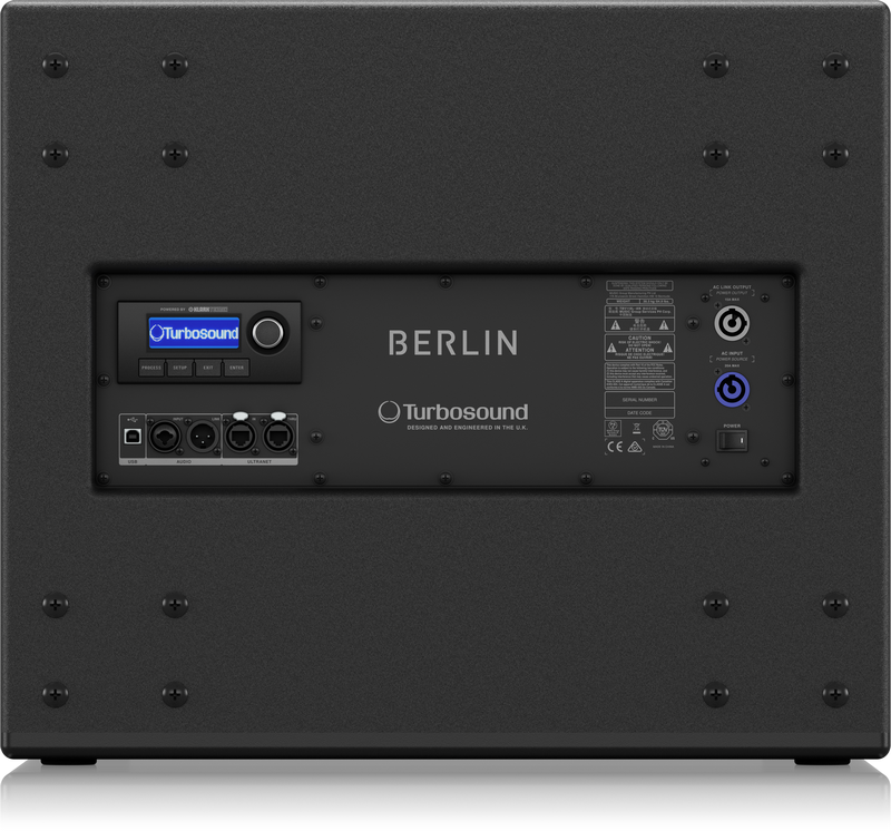 Серия Berlin представляет собой линейный массив постоянной кривизны с углом раскрытия элемента TBV123 по вертикали 15°. Элемент предназначен для работы совместно с сабвуфером прямого излучения TBV118B. Кроме пассивных версий, существуют активные версии TBV123-AN и TBV118B-AN. В них используется активный усилительный модуль с процессингом Klark-Teknik. Сигнал на активные колонки может подаваться в аналоговом и в цифровом виде по протоколу ULTRANET с цифровых микшеров и стейджбоксов Behringer и Midas. Модели серии Turbosound Berlin идеально подходят для инсталляций в залах малого и среднего размера, а благодаря интегрированной системе подвеса, могут использоваться и в небольшом прокате.