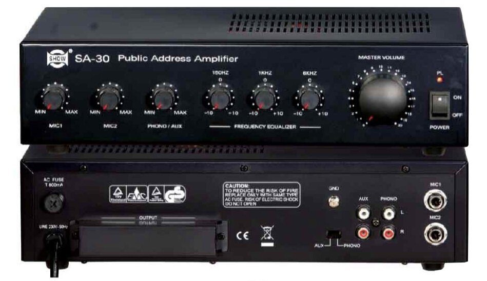 Show SA30 - трансляционный усилитель мощности 30 вт, 4/8/16 ом,100 в, 2mic.+1 AUX+1Phone,50Hz~20KHz