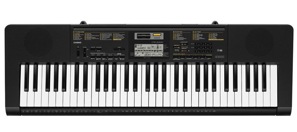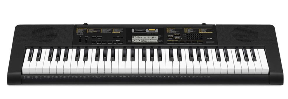CTK-2400 предлагает исполнителю удовольствие от игры на клавиатуре фортепианного типа (61 клавиша) и при этом позволяет открыть свой творческий потенциал с помощью следующих возможностей: погрузиться в яркий мир красочных музыкальных стилей - 150 встроенных стилей, расширить возможности функции сэмплирования за счет новой функции Voice Pad, подключить CD или MP3 плеер через аудио вход для музицирования вместе со своими любимыми композициями. Помимо этого СТК-2400 предлагает новую пошаговую систему обучения, позволяющую исполнителю от урока к уроку повышать свое фортепианное мастерство.