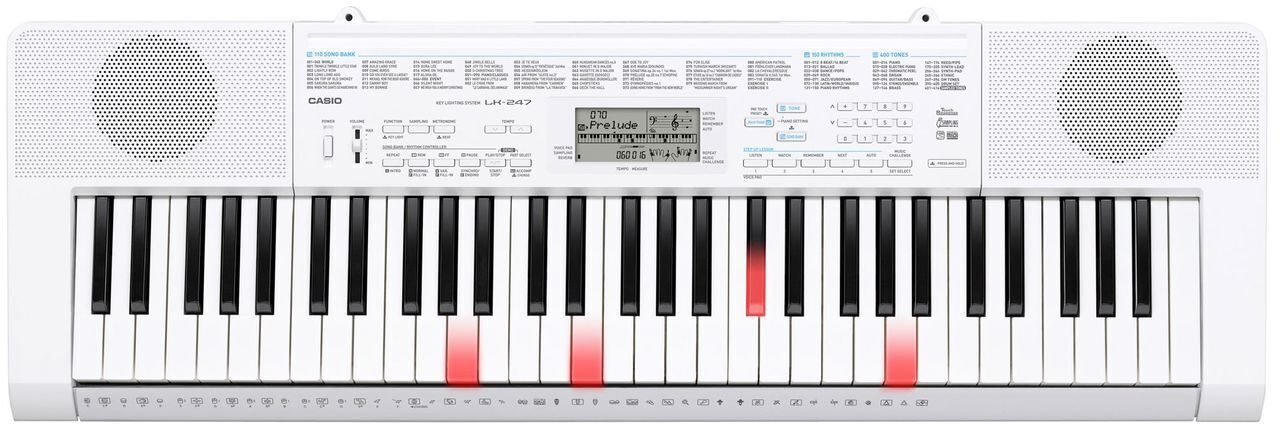 Синтезатор CASIO LK-247 усовершенствованная модель в линейке компактных синтезаторов LK. Если сравнивать эту модель с предыдущими синтезаторами, то в LK-247 вы сразу же увидите более стильный и современный дизайн. Что касается содержания, то из новшеств в модели присутствует функция Voice Pad, с помощью которой можно записывать и проигрывать мелодии с помощью кнопок быстрого доступа. Также появился аудио вход для подключения внешнего источника звука, например, плеера МР3. Максимальная полифония теперь рассчитана на 48 голосов.