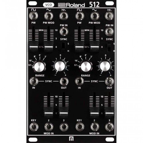 The 512 Dual VCO (осциллятор, управляемый напряжением) это модуль, состоящий из двух VCO. Каждый независимый VCO производит частоту в широком диапазоне в пределах 1V/октавы с импульсной, треугольный и пилообразной волнами на выходе. Управление шириной импульса происходит с панели, либо через CV модуляцию. Частота каждого осциллятора может быть синхронизирована в нескольких режимах для достижения уникального синхронного звучания.