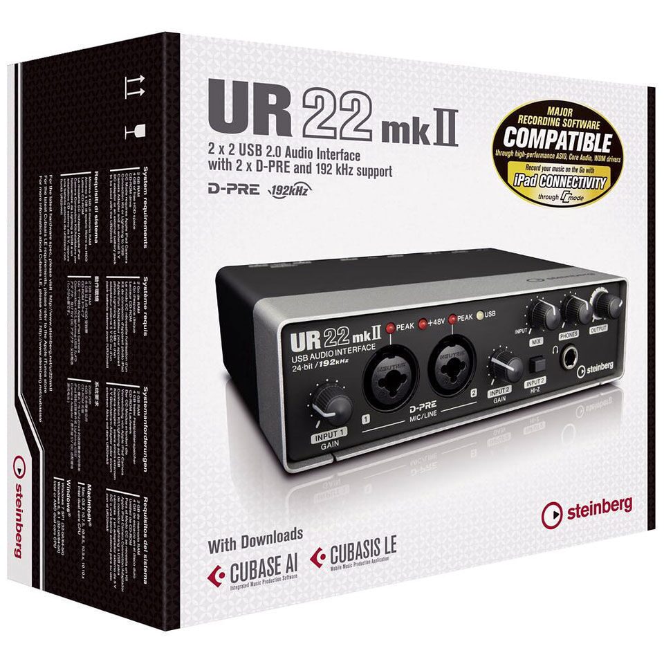 Укомплектованнная и поставляющаяся вместе со звуковой платой система Cubase AI и мобильное приложение Cubasis LE, делают UR22mkII современной полноценной мобильной студией звукозаписи. Устройство легко и стабильно подключается к компьютерам Мас и РС, также для версии mkII добавлен режим CC Mode мастерского уровня для iPad и вход для внешнего блока питания. UR22mkII является полностью самостоятельным мобильным устройством с невероятно прочной конструкцией и потрясающими звуковыми характеристиками, которые способны охватить все аспекты записи в маленьких студиях, в том числе и в мобильных ситуациях.
