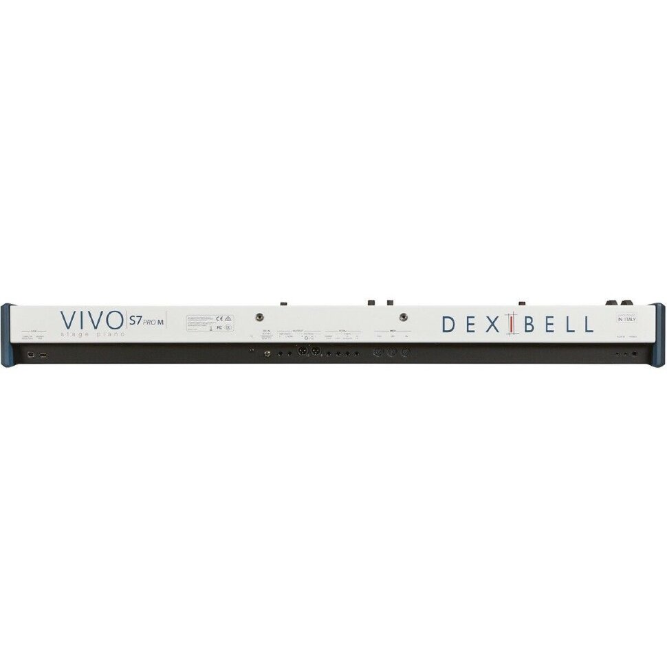Dexibell VIVO S7 Pro M представляет собой профессиональное сценическое цифровое пианино со встроенными мониторами. Новый инструмент имеет такое же управление, разъемы для подключения и функционал, как и получившее широкое признание сценическое пианино VIVO S7 Pro. Основным различием является добавленная 70-ваттная (2x 35 Вт) акустическая система. Несмотря на встроенные динамики, новая модель предлагает выступающим музыкантам более высокую мобильность, так как весит на 2,5 кг меньше версии без динамиков.