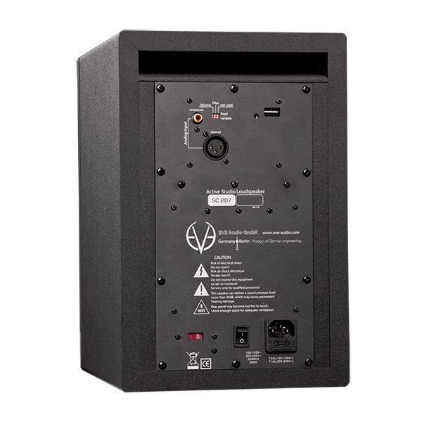 Усилитель c ШИМ, с ограничителем и способностью обеспечивать кратковременную выходную мощность 100 Вт гарантирует, что монитора SC207 хватит на все. А с его максимальным уровнем выходного сигнала 106 дБ (SPL @ 1m) вы можете быть уверены, что у вас достаточно мощности, чтобы точно и критично оценить микс. SC207 также является первой моделью монитора EVE, в которой используется фирменный AMT (Air Motion Transformer) RS2. Это означает, что он может обеспечить более высокий выходной уровень благодаря более крупной магнитной системе внутри. Как и любая другая акустическая система EVE Audio, для большего удобства SC207 оснащен как балансным входом XLR, так и небалансным входом RCA.