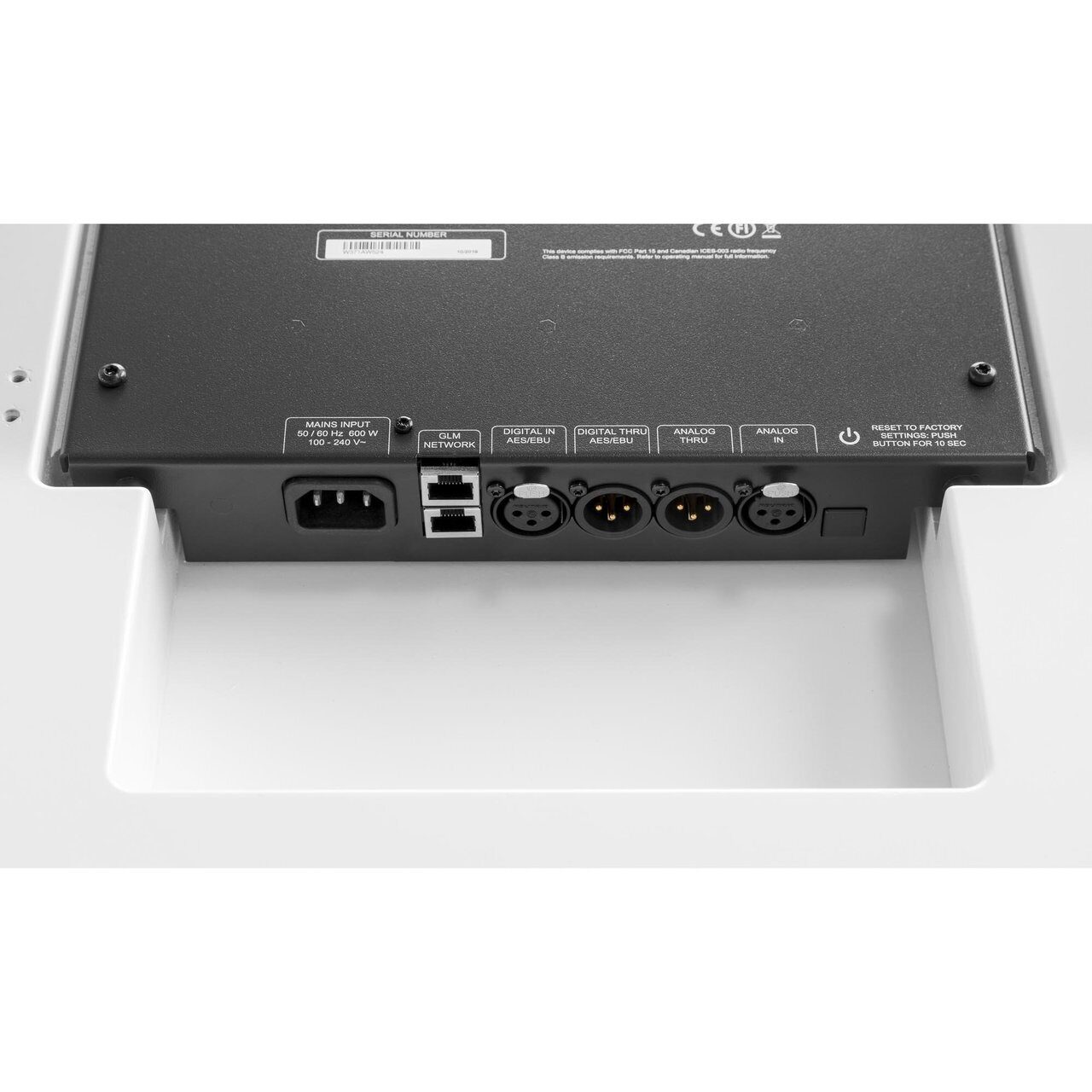 Аналоговый вх./вых. (XLR), цифровой вх./вых. AES/EBU (XLR), 2xRJ45 для работы с GLM системой