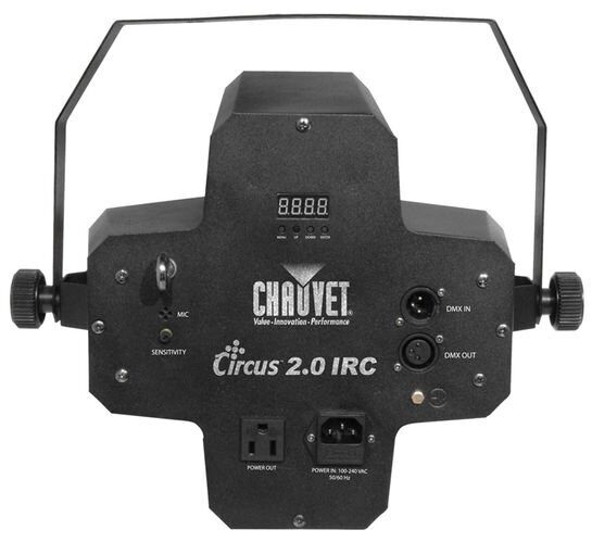 CHAUVET Circus2.0 IRC снабдили функцией автоматического выбора диапазона электропитания, поэтому он может работать с входным напряжение в100-240 В переменного тока, 50/60 Гц.