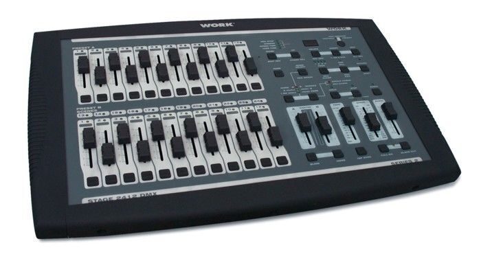 24 контрольных DMX канала ( 2 х 12 для двух независимых сцен).