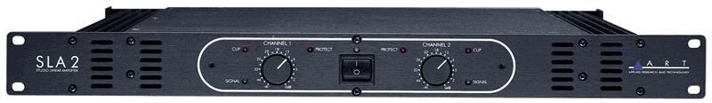2-канальный однорэковый транзисторный студийный усилитель SLA-2, предназначенный для студийного и инсталляционного использования, имеет мощность 200 Вт на канал при 8 Ом, 280 Вт на канал при 4 Ом, 560 Вт в мостовом режиме при 8 Ом. Минимальный импеданс нагрузки в режиме стерео — 2 Ом, в режиме моно — 4 Ом, при гудении и шуме >100 дБ, демпинг-фактор более 100.