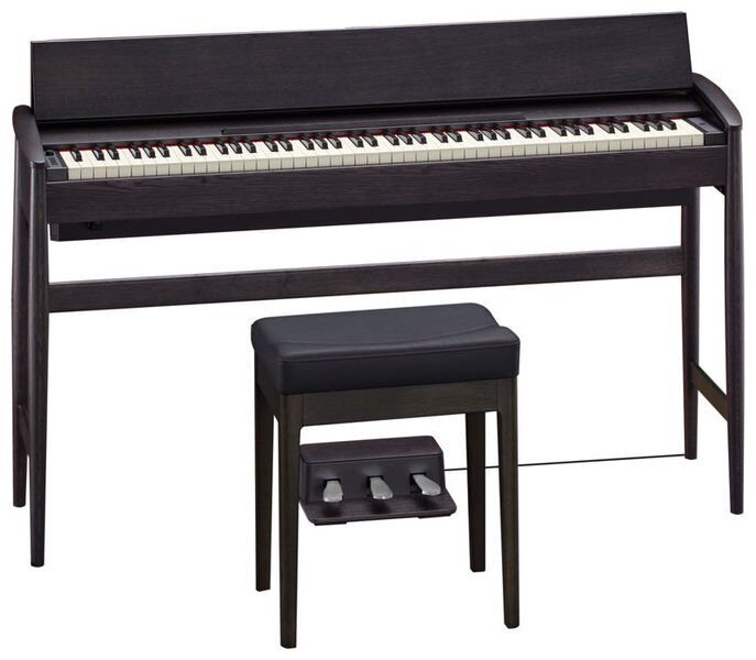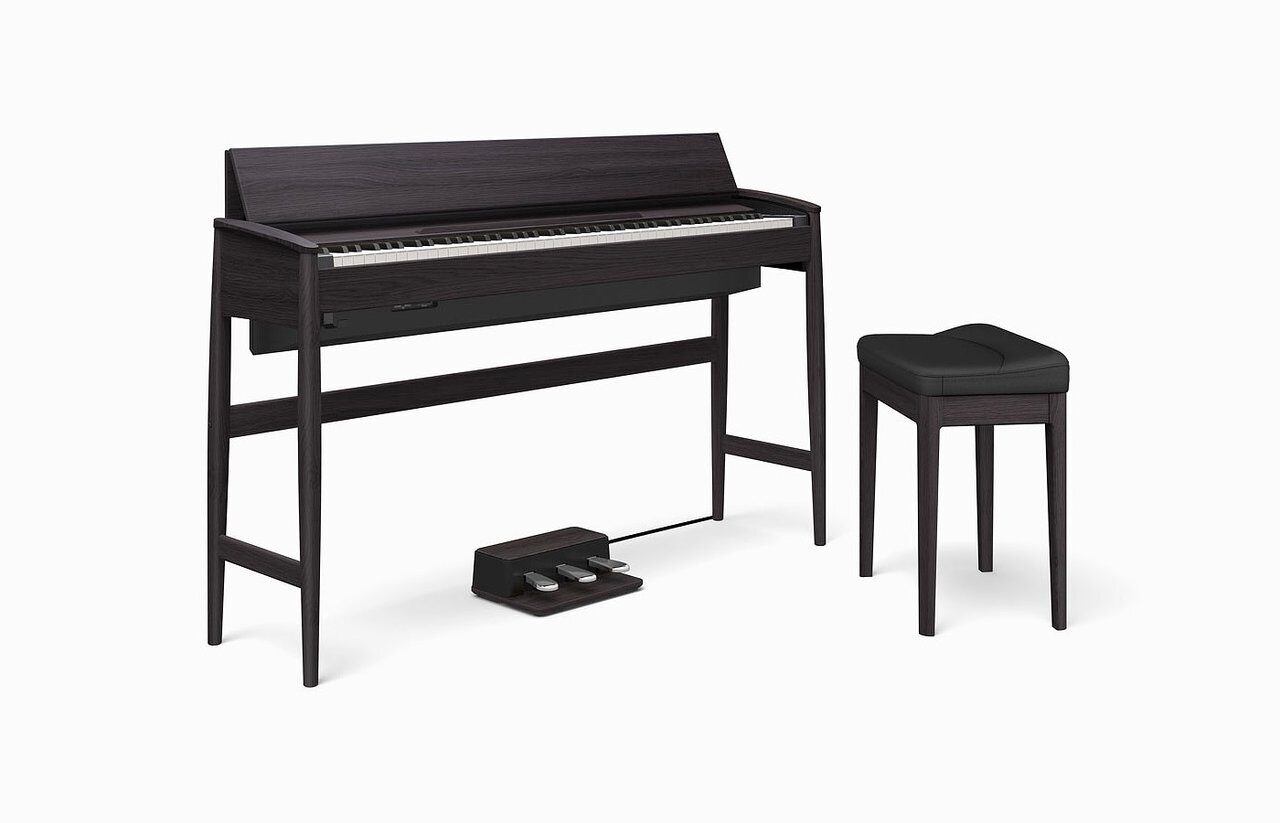 Фортепиано KIYOLA KF-10 сочетает передовые цифровые технологии с мастеровыми традициями. Этот инструмент был создан совместно компанией Roland и ведущей японской компанией-производителем деревянной мебели Karimoku. Это утонченное цифровое пианино достигает совершенной гармонии формы и назначения: мощный инструмент, который станет элегантным дополнением вашего интерьера. Его название KIYOLA переводится как «элегантность и красота». Это фортепиано с уникальным визуальным образом и корпусом ручной работы сделано из натурального массива дерева. С другой стороны, инновационные цифровые технологии Roland, включающие моделирование фортепиано SuperNATURAL и клавиатуру PHA-50, дают музыканту наибольшую эмоциональную отдачу фортепиано при игре. Возможность связаться с любыми музыкальными приложениями по беспроводной связи Bluetooth® дополнит возможности инструмента, а встроенная мощная акустическая система заполнит ваш дом объемным звучанием. Корпус может быть сделан из ореха или чистого дуба. Тройная педаль и рояльная банкетка включены в комплект.
