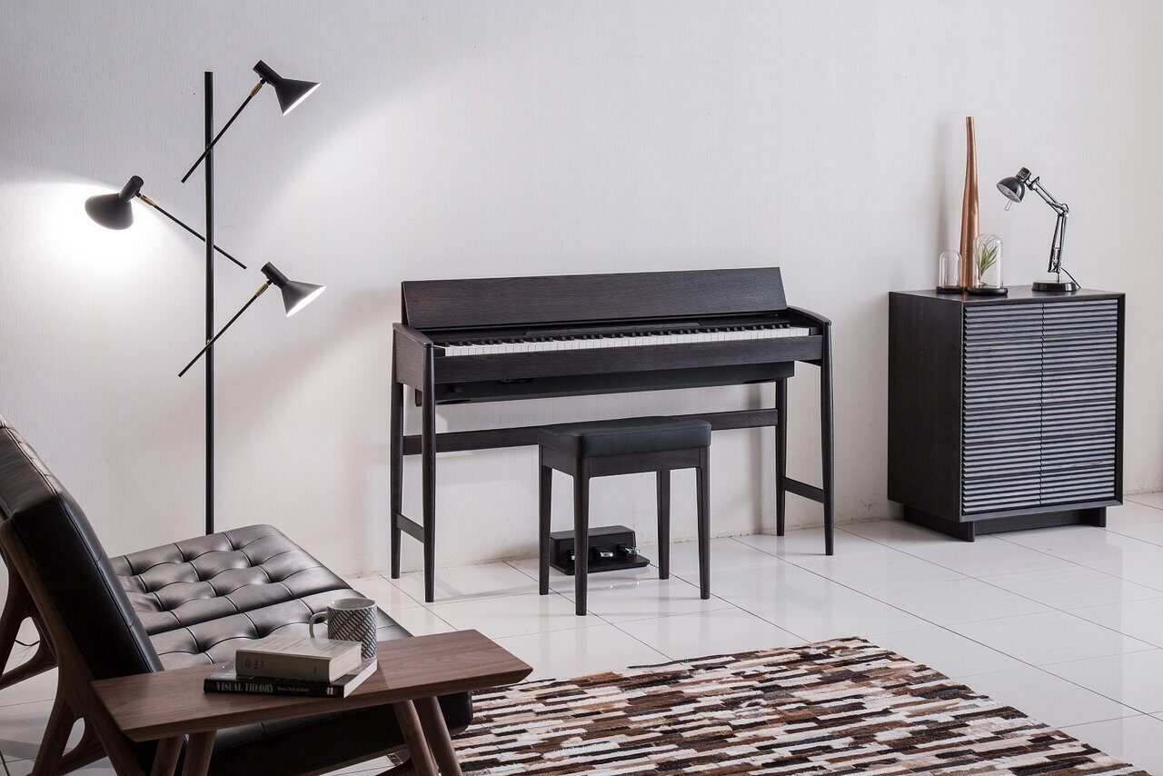 Одного взгляда мало, вам так и захочется прикоснуться руками к KIYOLA KF-10. Контурные боковые панели корпуса напоминают формы аристократической мебели Karimoku, а тонкие ножки позволяют инструменту гармонично влиться в жизненное пространство. С минимумом органов управления KIYOLA KF-10 удобен и ограничен: ручка громкости и кнопки расположены в стороне панели, чтобы не отвлекать от игры. Эстетичная и компактная крышка над клавиатурой в открытом состоянии работает пюпитром. За годы владения вы также оцените естественное старение натурального дерева, как в старинных инструментах.
