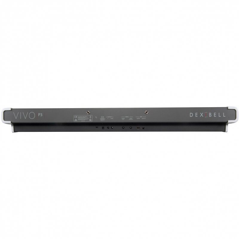 Портативное цифровое пианино Dexibell VIVO P3 оснащено взвешенной клавиатурой с молоточковой механикой, имеет 73 клавиши и неограниченную полифонию. На борту инструмента имеется 2 полнодиапазонных динамика, разъемы - выход на наушники, Stereo выходы, Stereo Audio In, USB выход, USB Device, беспроводная система Bluetooth, которая позволяет использовать инструмент как домашнюю акустическую систему.