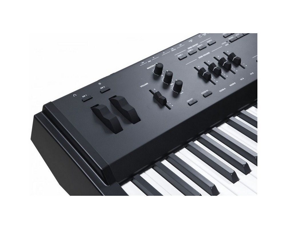 Вы можете комбинировать реверберации, делей, хорус, флейзеры, эквалайзеры, искажения и другие эффекты. Для того чтобы звук был более натуралистичным, имеется даже шум демпферной педали. Тембры в память встроены самые разные: клавесины, органы, винтажные инструменты, электропианино, барабаны и др. Клавиатура профессиональная, по тактильным ощущениям приятна и напоминает классический рояль.