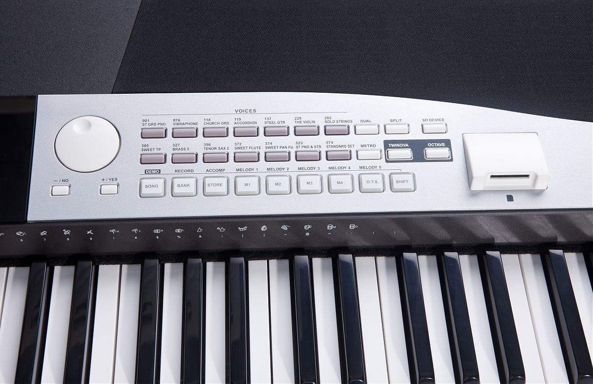 Мобильный инструмент имеет 88 полноразмерных взвешенных клавиш, что начинающим музыкантам дает возможность правильно «поставить руки», а опытных пользователей не вынуждает приноравливаться к непривычному пианино. Молоточковая механика копирует работу механизмов акустических аналогов. Клавиатура чувствительна к воздействию и отзывчива к экспрессии исполнения. Предусмотрена функция разделения клавиатуры, что дает возможность исполнить музыкальную композицию в «четыре руки».