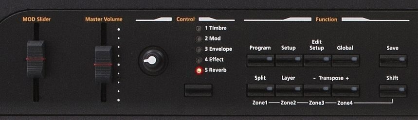 - Функции: наложения тембров (layer)/ (split) разделение клавиатуры (до 4-х зон) с регулировкой громкости звучания слоёв