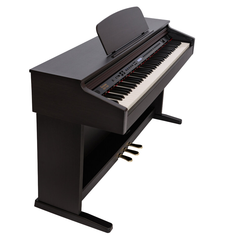 Rockdale Keys RDP-7088 - это высококачественный цифровой инструмент, который оборудован 88-нотной клавиатурой молоточкового типа, предусматривающая настройку чувствительности. Самые совершенные технологии генерации звуков PCM обеспечивают превосходный звук и аутентичные ощущения при игре. Предусмотрена возможность записи своей игры на фортепиано, а также аккомпанемента для игры под его сопровождение. Данное цифровое фортепиано может похвастаться не только современными технологиями, это еще и стильный предмет интерьера, способный украсить обстановку любого помещения.