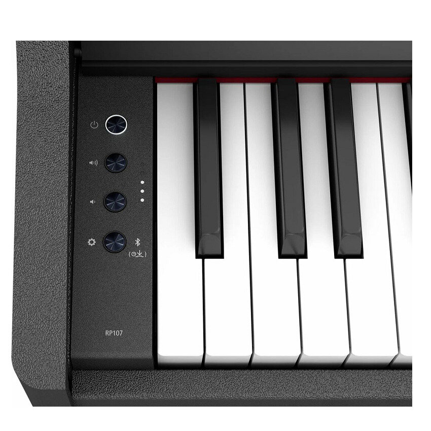 Благодаря традиционному стилю RP107 представляет собой неподвластный времени вид, который сочетается с любым декором. Тонкий корпус занимает гораздо меньше места, чем акустическое пианино, и при необходимости два человека могут перемещать инструмент из комнаты в комнату. Элегантная крышка выдвигается, чтобы защитить клавиатуру, когда она не используется, а встроенная подставка обеспечивает удобный дом для нот и мобильных устройств. А благодаря продуманно организованным элементам управления игроки могут быстро получить доступ к основным функциям фортепиано, не отвлекаясь.
