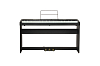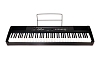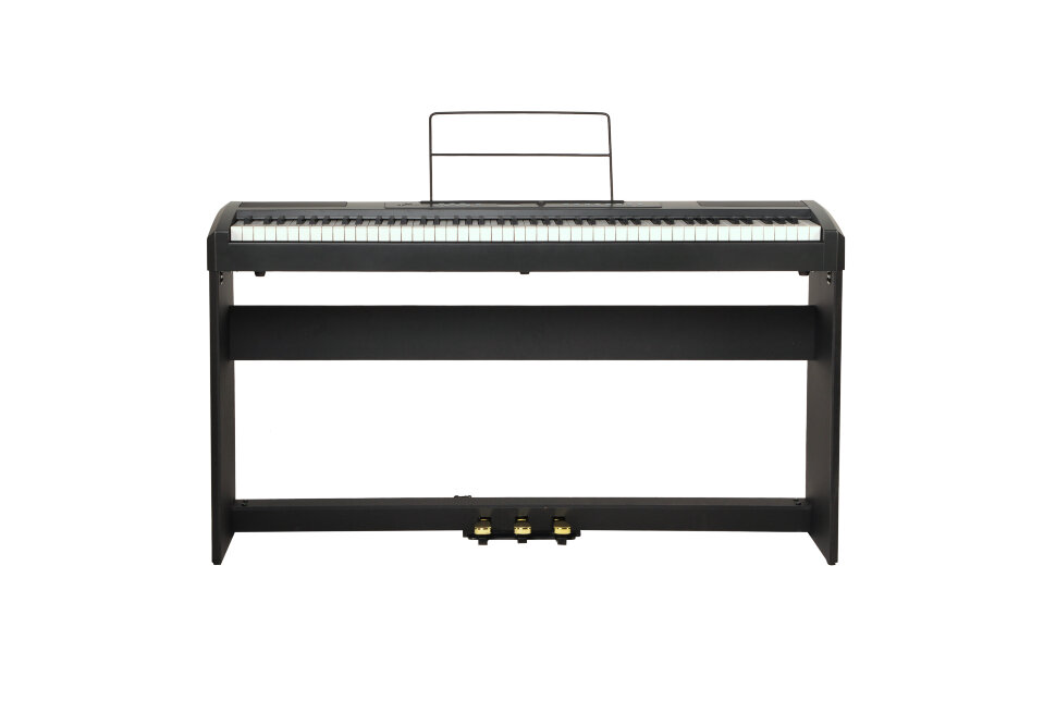 Модель поставляется в черном цвете, в комплекте идет сетевой адаптер, пюпитр и педаль.