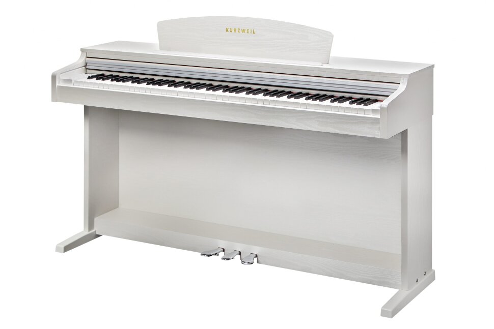 Цифровое пианино Kurzweil M115 – корпусной инструмент для обучения или домашнего музицирования от Kurzweil. Модель пришла на замену удачной Kurzweil М110 и вобрала в себя самые сильные её стороны. К главным достоинствам M115 можно отнести «тяжёлую» аутентичную фортепианную клавиатуру с молоточковой механикой и приятный реалистичный звук. В инструменте заложено два банка на 30 и 128 тембров. Полифония составляет 189 голосов, что позволяет исполнять достаточно сложные и реалистичные пассажи используя педаль. Из дополнительного функционала можно отметить: возможность разделения клавиатуры, наложение тембров и возможность игры дуэтом. Так же, присутствует запись звука и 30 стилей автоаккомпанемента. Мощности встроенной акустики на 25 Ватт с запасом хватает для домашних занятий. Так же, возможно подключение двух пар наушников. Так же, возможно подключение двух пар наушников.В комплекте с инструментом идёт банкетка.