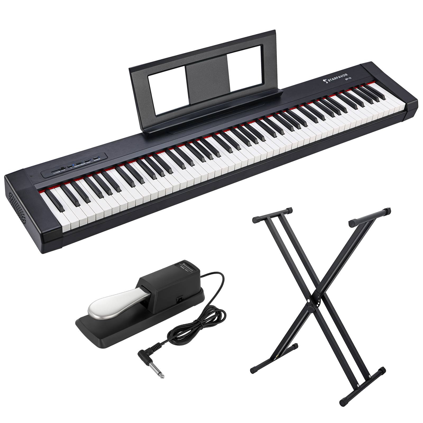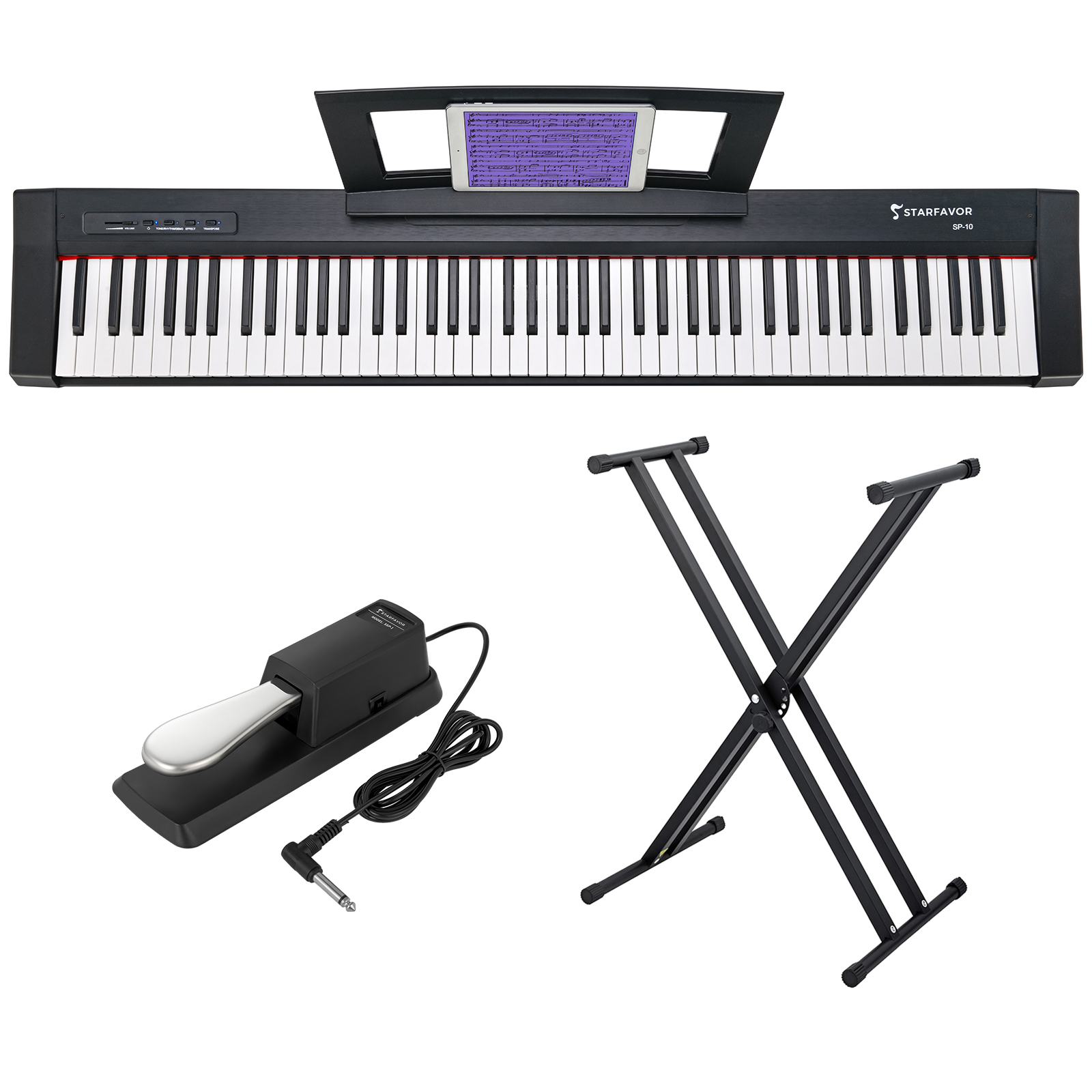 Starfavor SP-10 представляет собой 88 полноразмерную, полувзвешенную клавиатуру, размер клавиши такой же, как у настоящего фортепиано, это отличный выбор для начинающих и студентов, чтобы начать обучение.