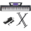 Комплект фортепианной клавиатуры SP-10 включает подставку для фортепиано в стиле X, держатель для нотных листов, педаль сустейна и блок питания для фортепиано.