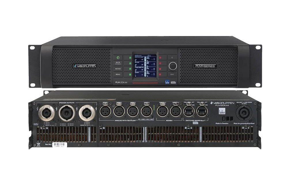 Lab Gruppen PLM 20K44 SP усилитель мощностью 20 000 Вт с 4 гибкими выходными каналами на разъемах SpeakON, цифровой обработкой сигналов LAKE и цифровой аудиосетью для мобильных приложений.