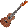 UKULELE MINO`AKA - CONCERT имеет корпус из ламинированного красного дерева (mahogany), за счет чего достигается превосходный звук и привлекательный внешний вид. Гриф также выполнен из красного дерева, покрытие корпуса и грифа - матовое. Накладка грифа - из палисандра, имеет длину 347 миллиметров. На грифе 19 ладов с инкрустацией классическими перламутровыми точками.