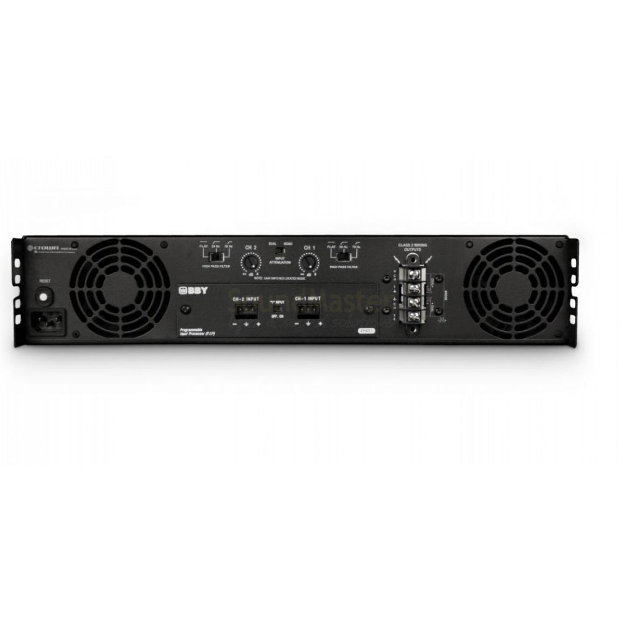 - Вентиляция: Принудительная с потоком от передней к задней панели. Два вентилятора с плавно меняющейся скоростью вращения гонят поток воздуха через усилитель, охлаждая его.
