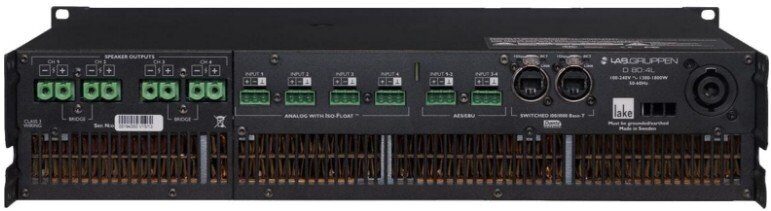 Инсталляционные усилители LabGruppen D80:4L, D120:4L и D200:4L представляют собой настоящий технологический шедевр, включающий в себя множество уникальных технических разработок. Это наличие не только аналоговых, но и цифровых интерфейсов AES/EBU и Dante с возможностью назначения приоритетов и резевирования входов, это встроенный процессор для акустических систем с эксклюзивными алгоритмами Lake, это импульсный блок питания с корректором фактора мощности и конечно же это уникальный выходной блок усиления, работающий в запатентованном классе TD (Tracking Class D). Именно благодаря разработке этого каскада компании LabGruppen удалось выделиться на рынке профессионального усиления и быстро занять лидирующие позиции.